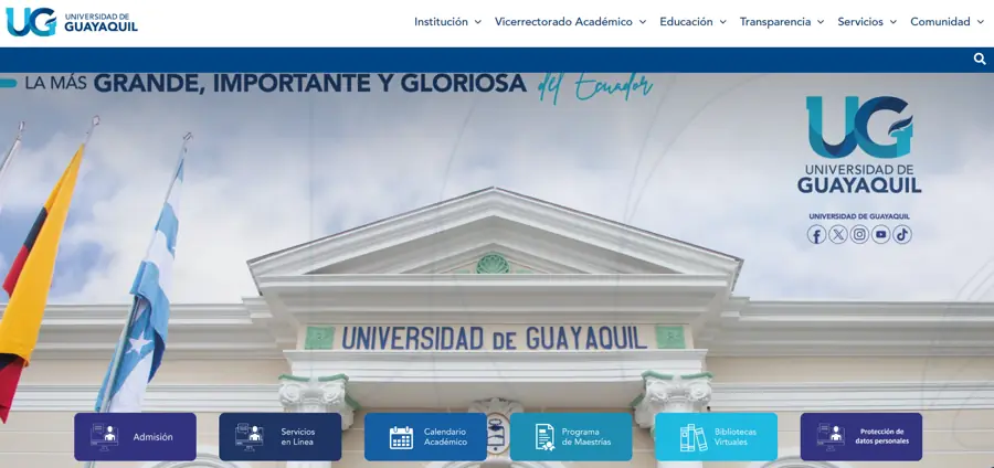 Abre tu navegador y ve a https://www.ug.edu.ec/. No uses enlaces de terceros, ya que muchos están desactualizados. Te lo digo por experiencia: Otras guías están obsoletas y sin actualizar.