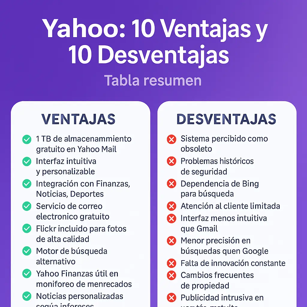 Tabla Resumen: 10 Ventajas y 10 Desventajas de Yahoo